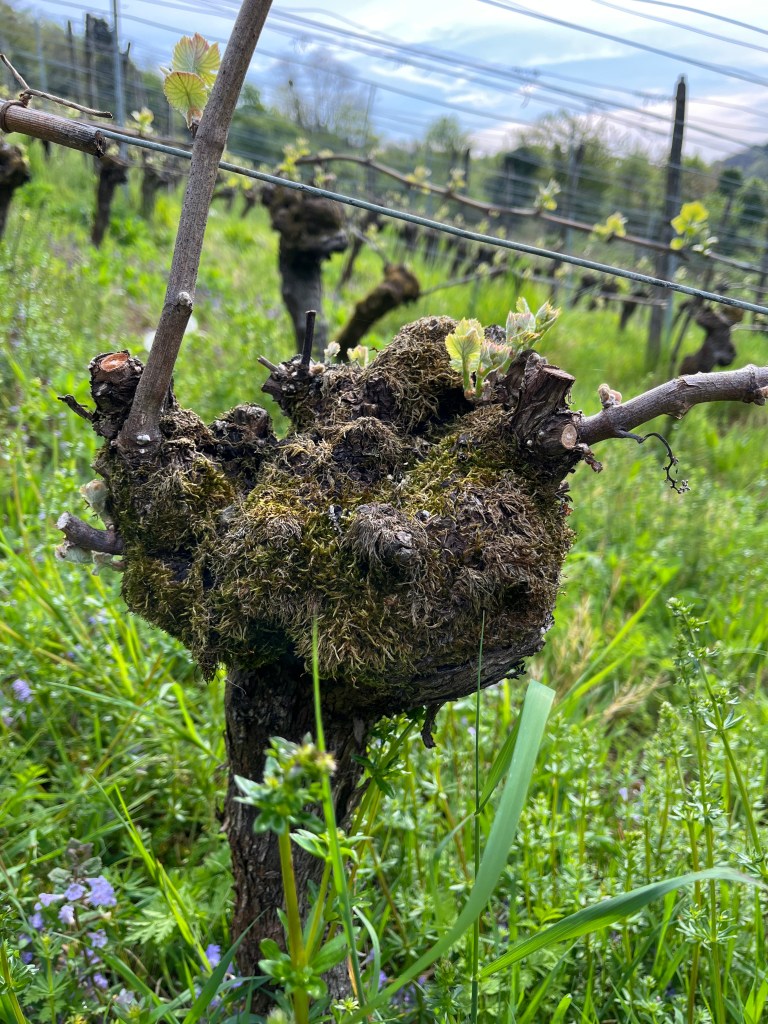 … verwenden wir keine Herbizide, keine Botrytizide, keine systemischen Fungizide und wir düngen ausschließlich mit dem Rebschnitt und dem Trester. Unsere Böden leben, und auf den Trauben gedeihen die Hefen, die später unsere Moste spontan vergären.